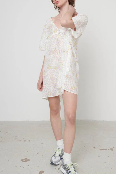Maxi-jurk V-hals korte mouwen lus aan het voorste materiaal Zorgmateriaal: 66% polyester, 34% katoenverzorging: 30 ° C Machine Wash. Droog niet in de droger. IJzer bij lage temperatuur. Details kleur: bloemen | Witte stijl nr.: DRO14CE22