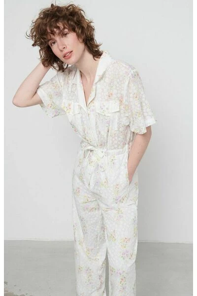 Beschrijving Korte -Sleeved Jumpsuit Samenstelling 66% Polyester, 34% katoen