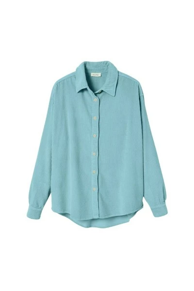 Blauw shirt van American Vintage. Deze stijl is vervaardigd van geribbelde katoen en bevat knoppen knopen en lange mouwen met knoopmanchetten.