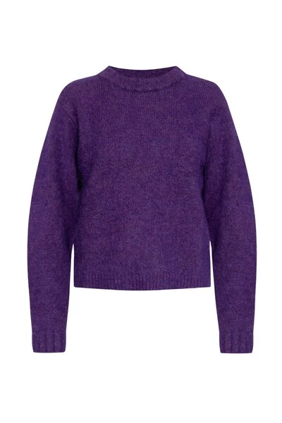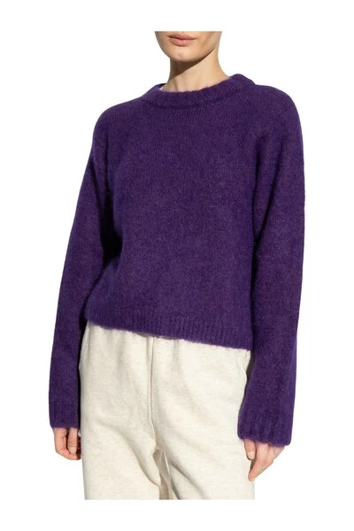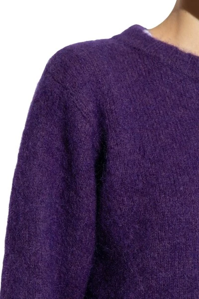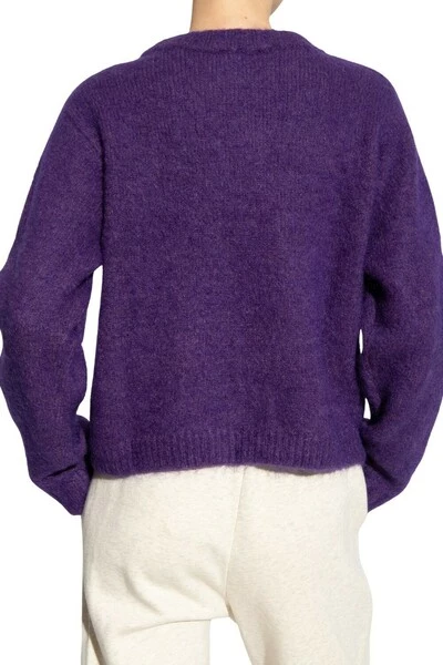 Paarse loszittende trui van American Vintage. Gemaakt van een mohair-blend, dit kledingstuk heeft een geribbelde V-hals, zoom en manchetten.