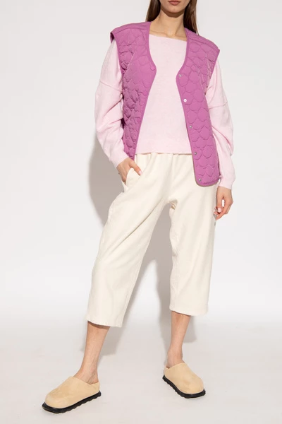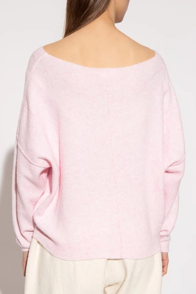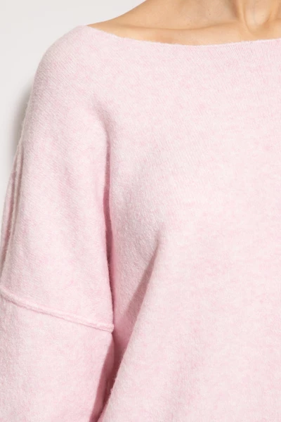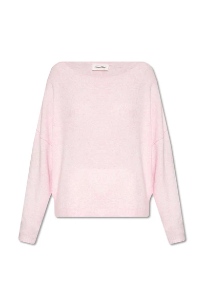 Lichte roze trui van Amerikaanse vintage. Gebreid van een wolmix, is dit ronde halsontwerp verrijkt door een decoratieve naad aan de achterkant en geribbelde versieringen.