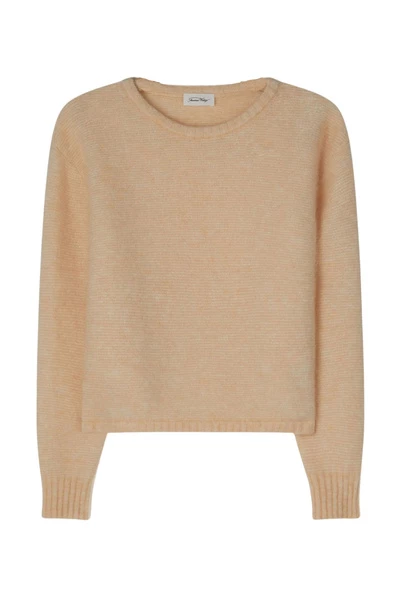 American Vintage Trui Zalm zabi18hh2-biscuit chine. Getailleerde trui met lange mouwen en ronde hals. Hand was. Niet in de droger. Droog plat.