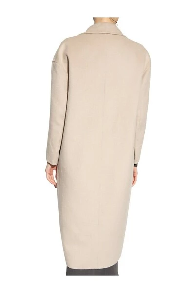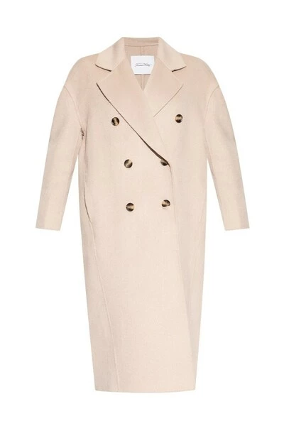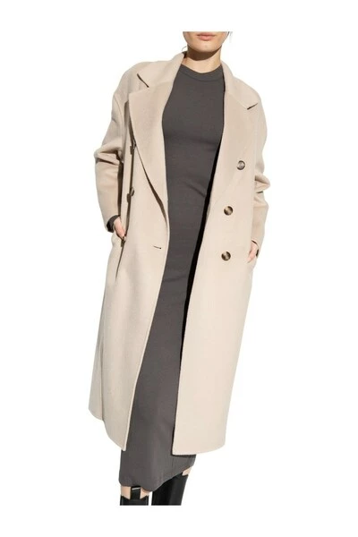 Beige Coat van American Vintage. Gemaakt van een wolmix met een met dubbele rijs, ontspannen silhouet, deze stijl heeft knoopbevestigingen, inkeping revers, twee slipzakken en lange mouwen.
