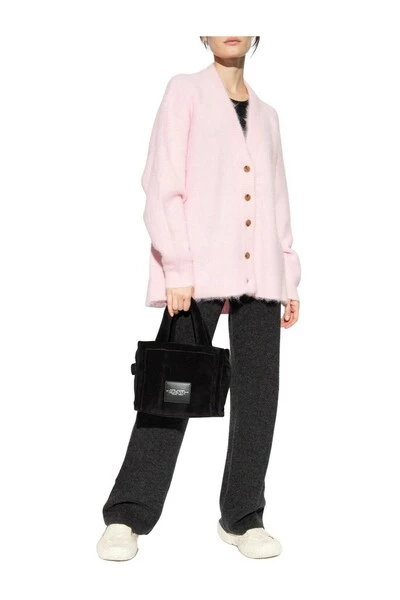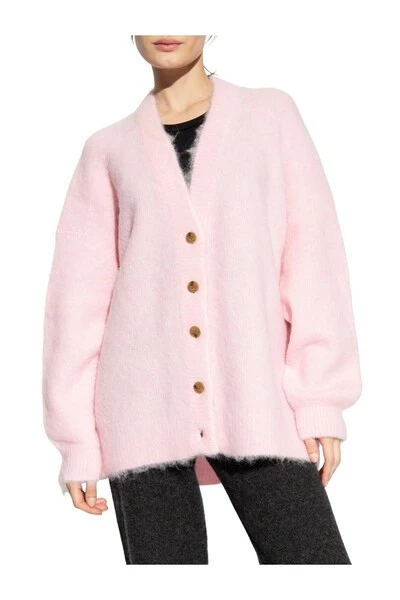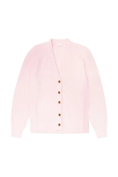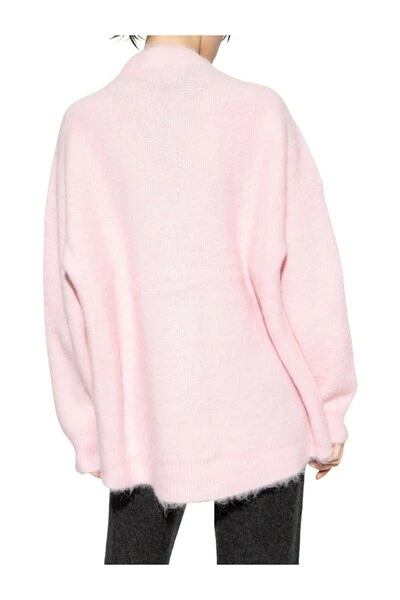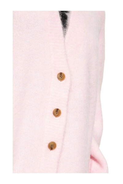 Lichtroze loszittende vest van American Vintage. Gemaakt van een mohair -blend, dit kledingstuk is compleet met knoopbevestigingen, langere rug en geribbelde versieringen bij de zoom en manchetten.