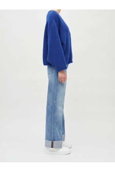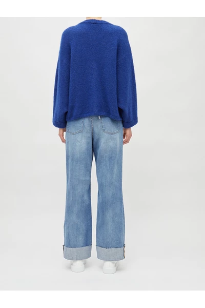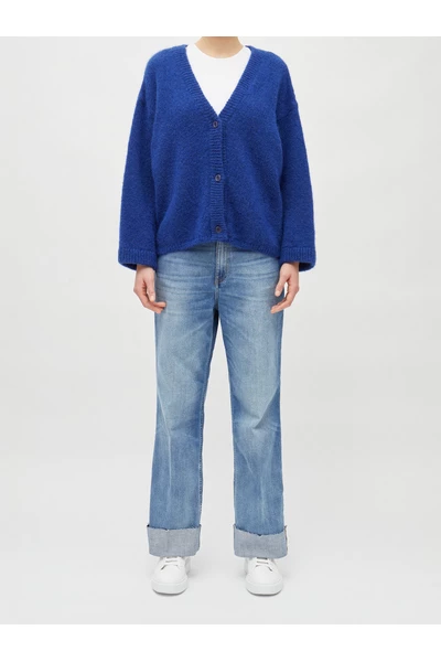 -Oversized trucs met mohair-pasvorm: losse, oversized-fit-continue knop strippen-over-de-cut schouder met lange mouwbrede, geribbelde manchetten: handwas-oversized gebreide jas met mohair fit: los, overdekte knop overgedrukte schouder met lange mouw-breed, geribbelde manchetten: hand wassen